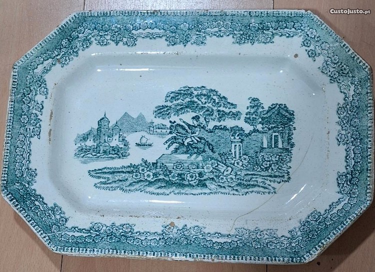 Travessa octogonal em faiança Corticeira, Estátua verde