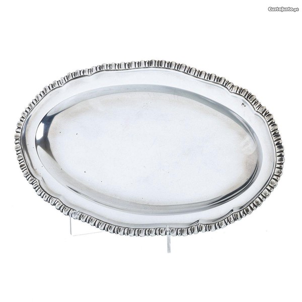 Travessa em prata portuguesa, contrastada e marcada, oval com bordo gomado e relevado com godrões.