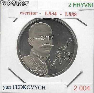 Ucrânia - - - 2 Hryvni - 2004 - - - Yurii Fedkovych- - - - Moeda