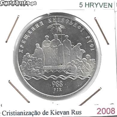 Ucrânia - - 5 Hryvnen - 2008 - - Cristianização de Kievan Rus- - Moeda