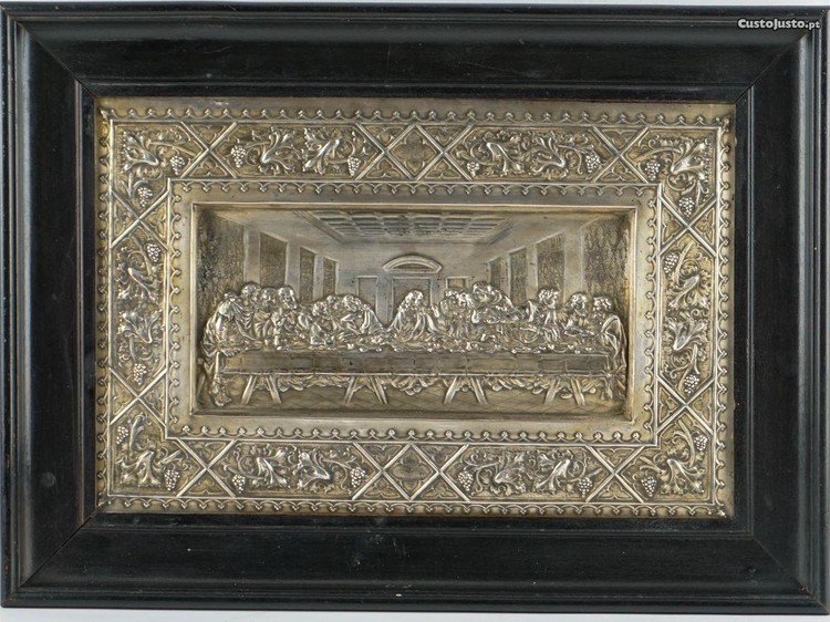 Última Ceia - Placa em metal prateado baseado na última ceia de Leonardo DaVinci