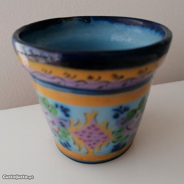 Vaso em faiança Vistal - Alcobaça, motivo 78-A, policromado, com as cores tradicionais e decoração floral, com a altura de 8cm e o diâmetro da aba de 8,8cm.