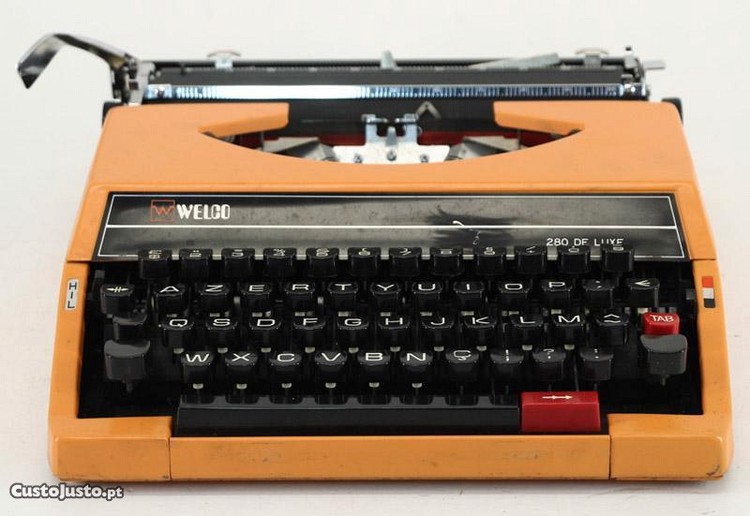 Máquina de escrever portátil vintage da marca Welco, modelo 280 Deluxe. Com tampa.