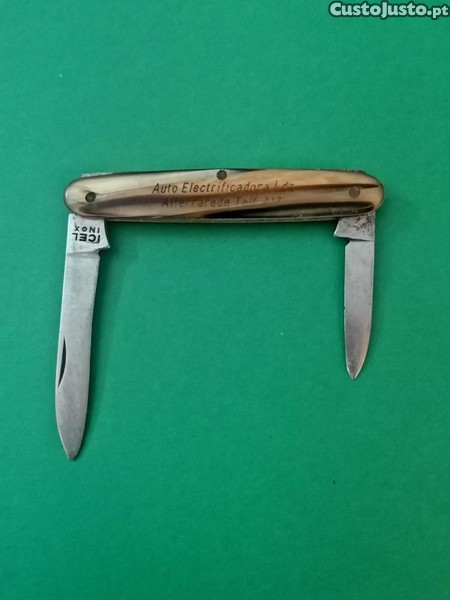 Canivete de bolso, com punho em madrepérola castanho, com duas lâminas Icel, de reclamo da Auto Electrificadora, Lda..