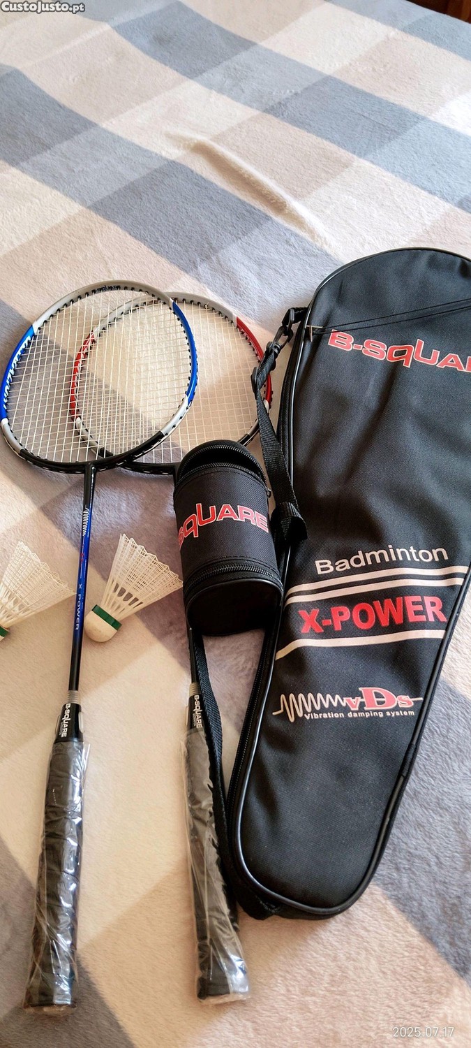 Conjunto com duas raquetes e dois volantes mais bolsa de transporte da b-square x-power. Com vds system. Nunca chegaram a ser usadas, mas tiveram guardadas algum tempo. Preço negociável