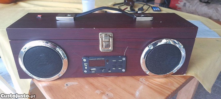 Tem radio fm, ideal para levar para piquenique, pise ser ligada ao isqueiro do carro.