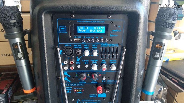 Preço: 299 €Colunas NOVAS Recarregáveis c/2 Microfones Sem Fio Oqan QLS-12 Travel