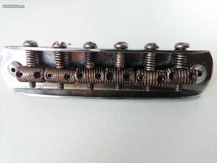 Esta é uma peça que pode ser muito interessante para um colecionador/dono de uma guitarra Fender Jazzmaster/Jaguar dos anos 60 (pré-CBS), ter como ponte de reserva, ou para utilização na reposição das suas peças constituintes. Esta é uma ponte de uma Jazzmaster, só que como sabemos, estas pontes são também usadas nas Fender Jaguar, embora existam subtis diferenças nas suas saddles/selas e na altura dos dois pernos elevatórios da ponte, que um verdadeiro entendido nessas guitarras dessa época conseguirá diferenciar entre as duas.