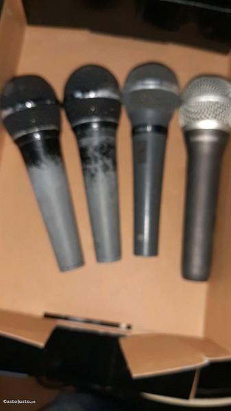 Vendo quatro microfones em bom estado e a funcionar. 2 são normais. Outros dois, um é marca Roland e outro da Samsom.