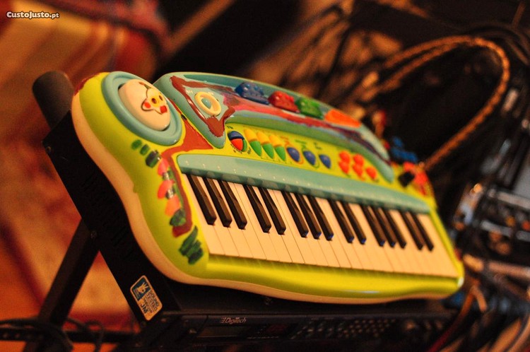 Pequeno video demonstrativo, disponível no youtube - procurar por "warp machine toy keyboard circuit bending for sale"