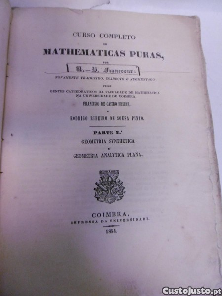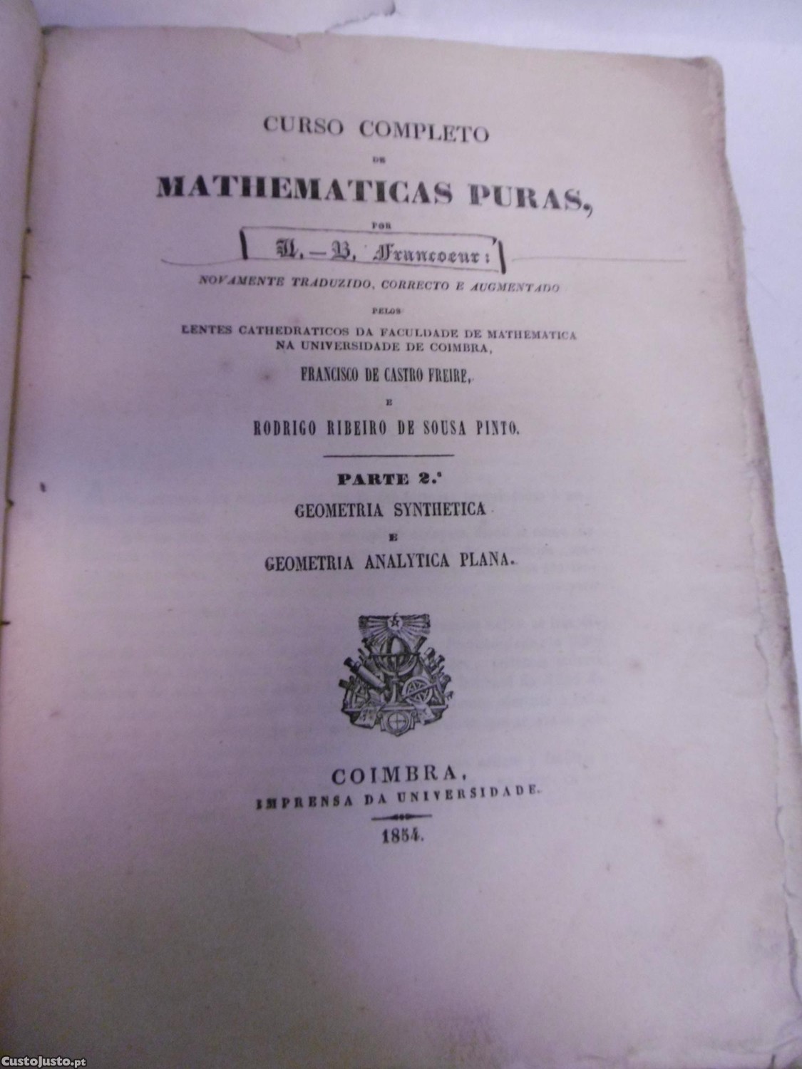 Preço: 25 €"Curso Completo de Mathematicas Puras"- 1854
