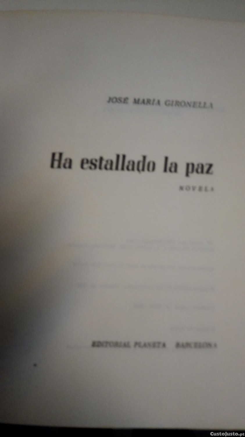"Ha estallado la paz" de José María Gironella, publicado pela Editorial Planeta em Barcelona. O romance foi publicado em 1966 e descreve o clima dos anos imediatamente após a Guerra Civil Espanhola