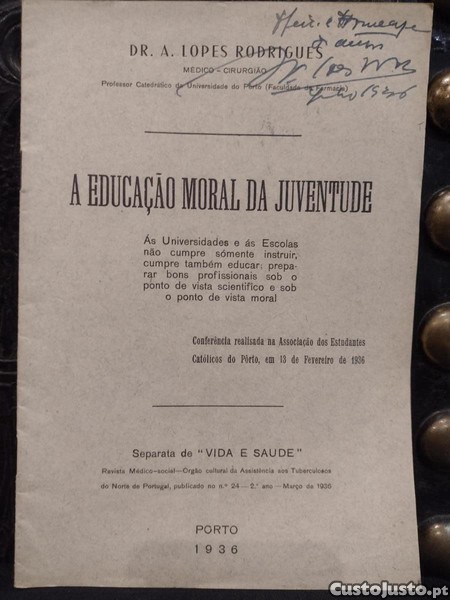 A Educação Moral da Juventude 1936 Dr A. Lopes Rodrigues