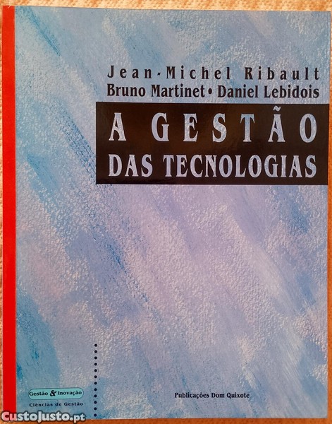 A gestão das tecnologias, Jean-Michel Ribault, Bruno Martinet e Daniel Lebidois, Publicações Dom Quixote, Coleção Gestão & Inovação, Série Ciências de Gestão n.º 5, 1995, 296 páginas. Com assinatura de posse; em bom estado.