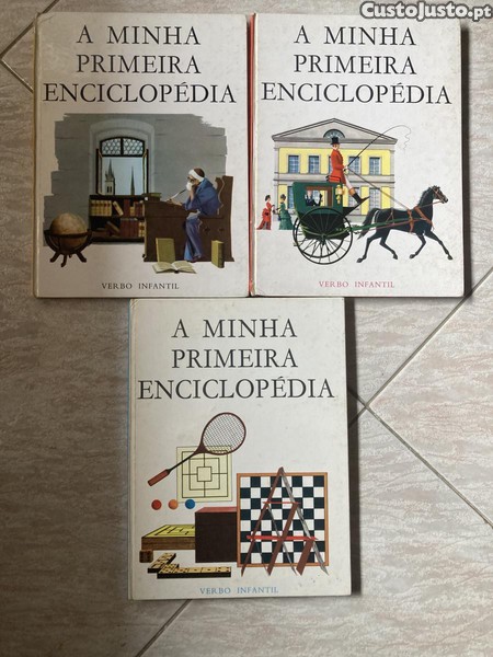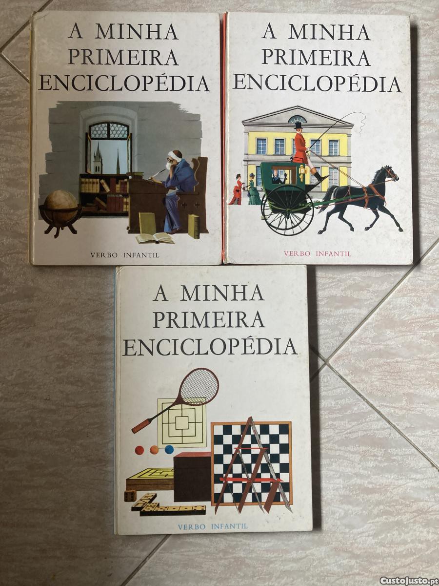 Vendo A Minha Primeira Enciclopédia (3 volumes). Capas um pouco desgastadas (em especial o primeiro volume), bom estado geral interior, com algumas marcas de passagem do tempo. 5EUR os 3 volumes. A retirar junto ao Corte Inglès de Gaia.
