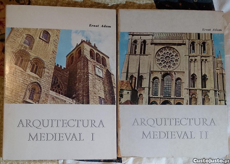 Arquitectura medieval I e II, Ernst Adam, Editorial Verbo, Colecção Ars Mundi n.ºs 9 e 12, 1970, 205+203 páginas, respetivamente. Com assinatura de posse; desgaste nas capas do segundo volume; em bom estado geral.