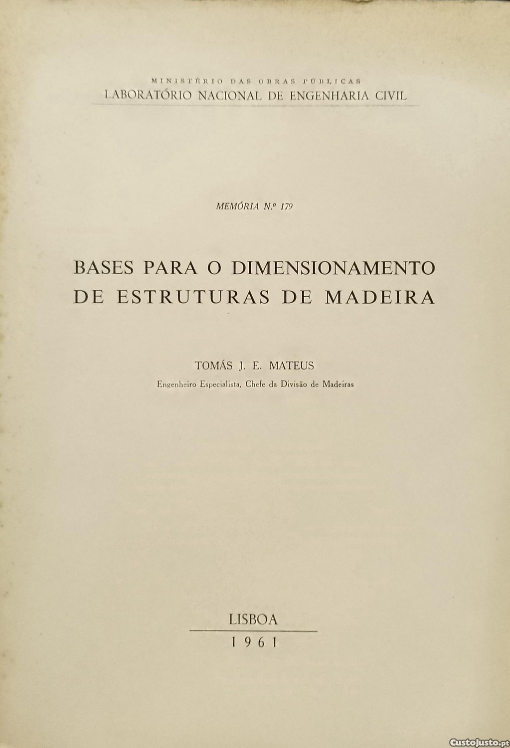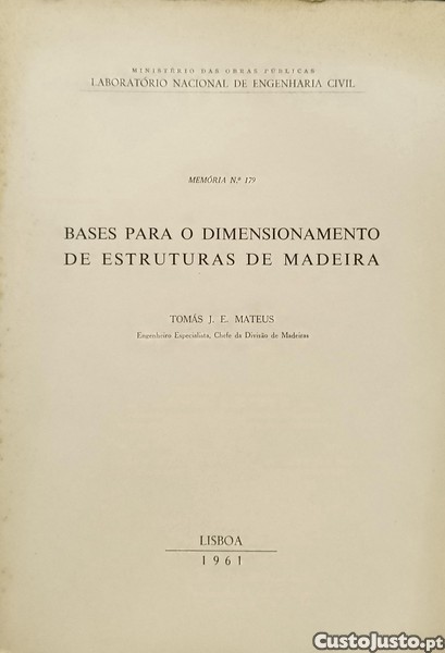 Preço: 29 €Bases para o Dimensionamento de estruturas de Madeira - Tomás J. E. Mateus