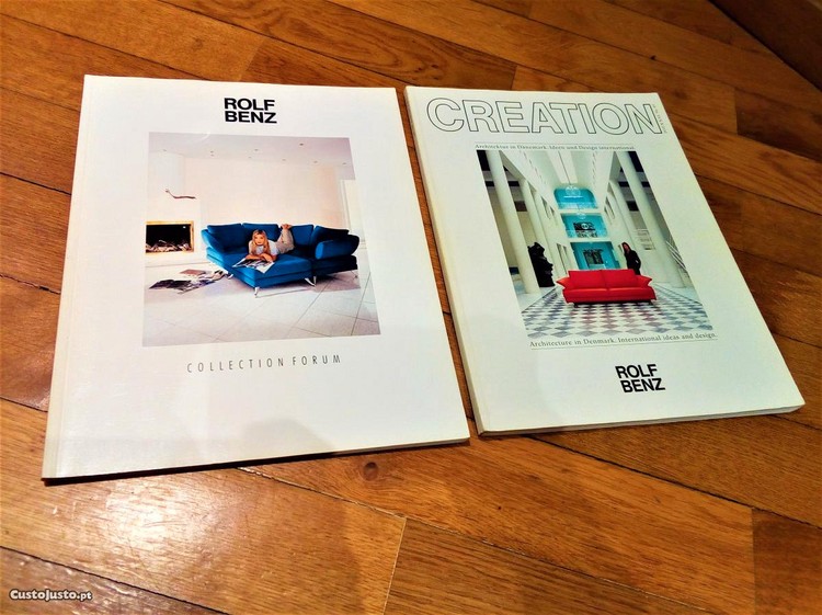 Dois catálogos dos anos 90 da prestigiada marca alemã de sofás e mobiliário, Rolf Benz. Um sobre a Collection Forum (116 páginas), sendo o outro o catálogo anual da marca - Journal 96/97 (164 páginas). Ambos em excelente estado de conservação, como novos e guardados há anos.