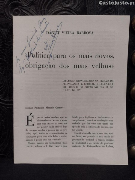 Preço: 7 €Daniel Vieira Barbosa "Discurso Propaganda Eleitoral 1951"