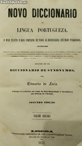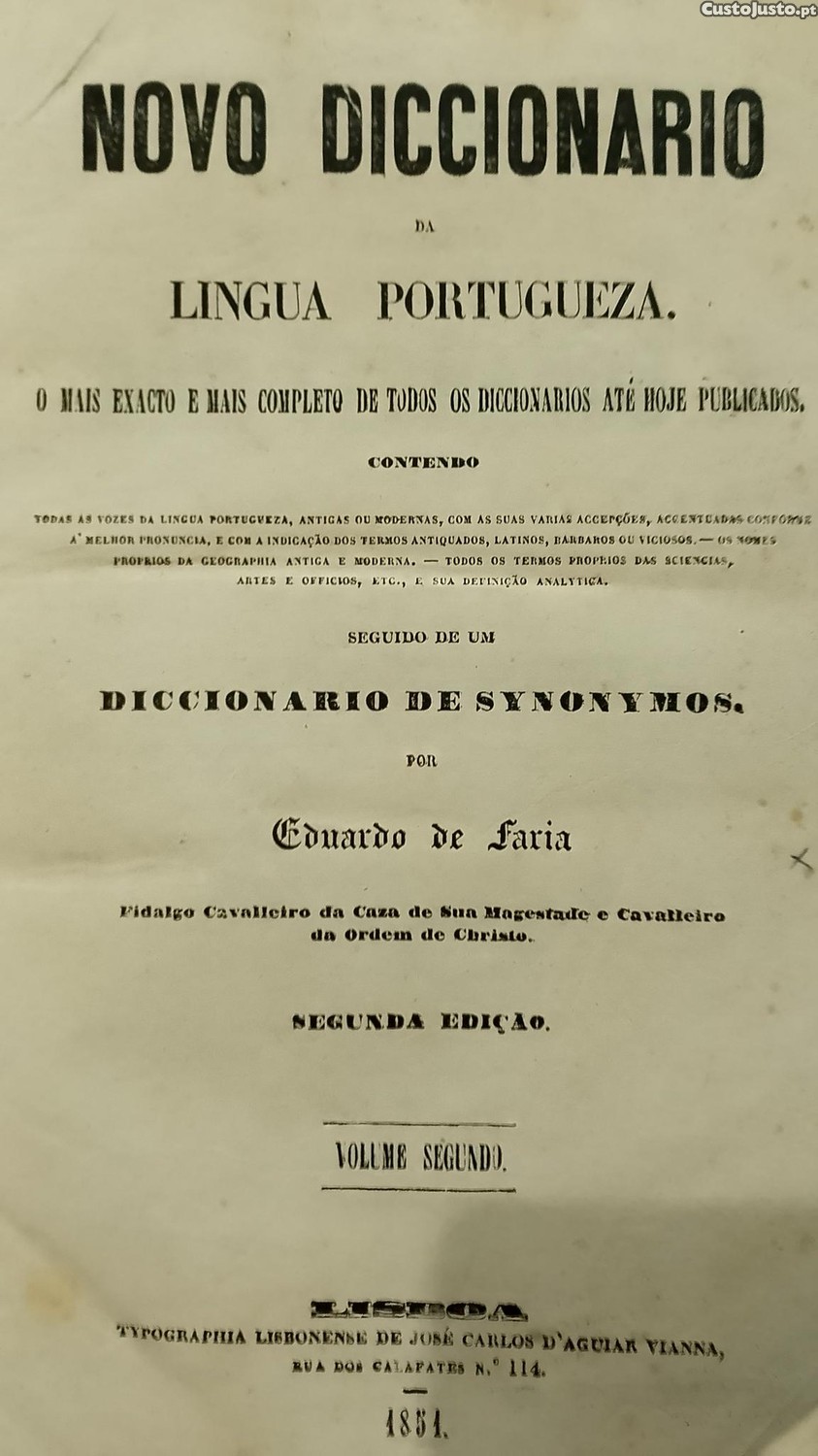 Preço: 39 €Dicionário 1851 Eduardo de Faria 2º Volume