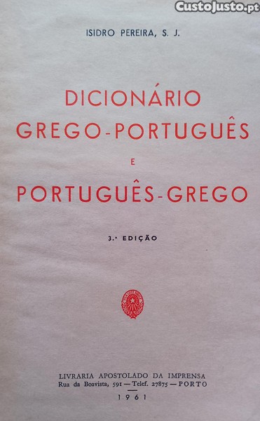 Preço: 36 €Dicionário Grego Português e Português Grego 1961