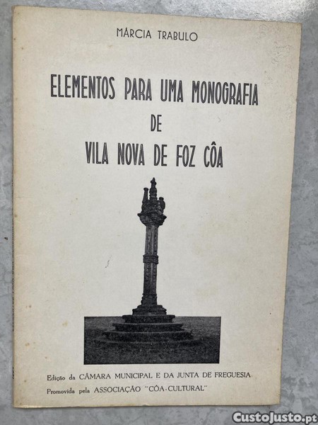 Vendo livro de Márcia Trabulo Elementos para uma monografia de Vila Nova de Foz Côa, com assinatura de posse que retiro com corretor branco antes da venda. A retirar junto ao Corte Inglès de Gaia.