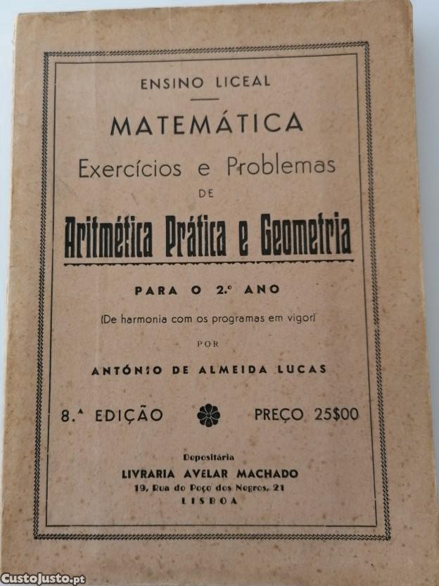 Livro de António de Almeida Lucas, "Matemática Exercícios e Problemas de Aritmética Prática e Geometria, para o 2. Ano do Ensino Liceal":