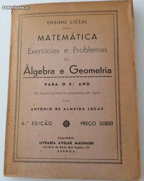 Livro de António de Almeida Lucas, "Matemática Exercícios e Problemas de Álgebra e Geometria, para o 4. Ano do Ensino Liceal":