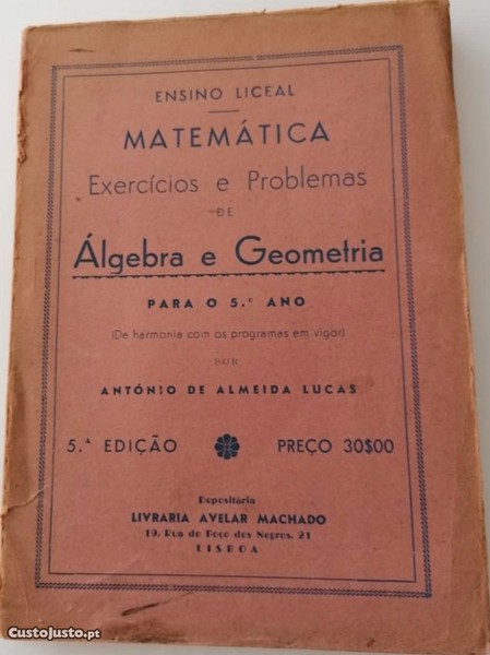 Livro de António de Almeida Lucas, "Matemática Exercícios e Problemas de Álgebra e Geometria, para o 5. Ano do Ensino Liceal":