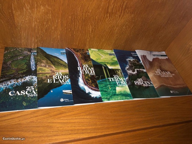 Guias da Água do Jornal Expresso Coleção de 6 cadernos 25 Rios e Lagoas imperdíveis 25 Cascatas imperdíveis 25 Praias Marítimas e Fluviais imperdíveis 25 Termas e Spas imperdíveis 25 Piscinas imperdíveis 25 Ilhas e Ilhéus Todos impecáveis por manusear