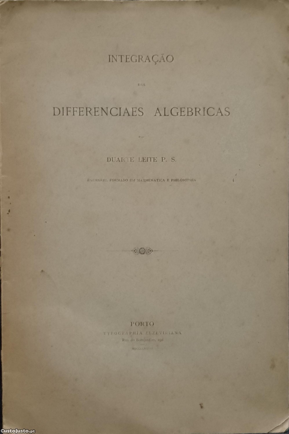 Preço: 14 €Integração das Differenciaes Algebricas - Duarte Leite P. S. (1886)