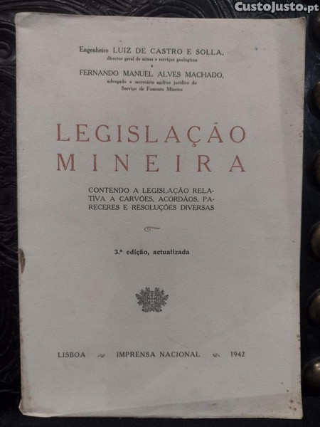 Preço: 20 €Legislação Mineira 1942 Luiz de Castro e Solla