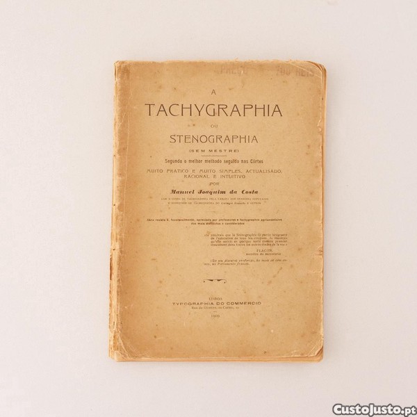 Preço: 30 €Livro "A Tachygraphia ou Stenographia (sem mestre)", 1909