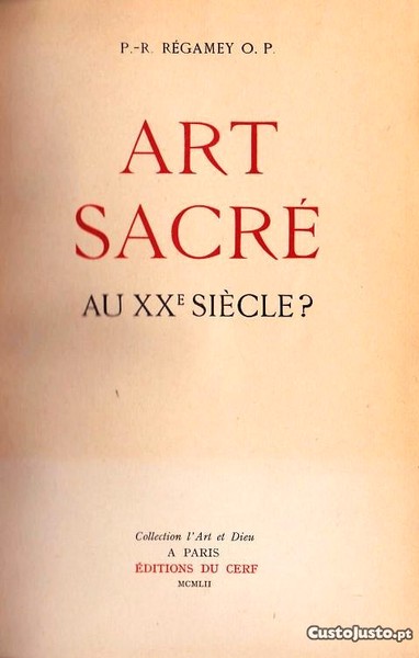 Livro: Art Sacré au XXe siècle de Pie Raymond Régamey 1952 raro
