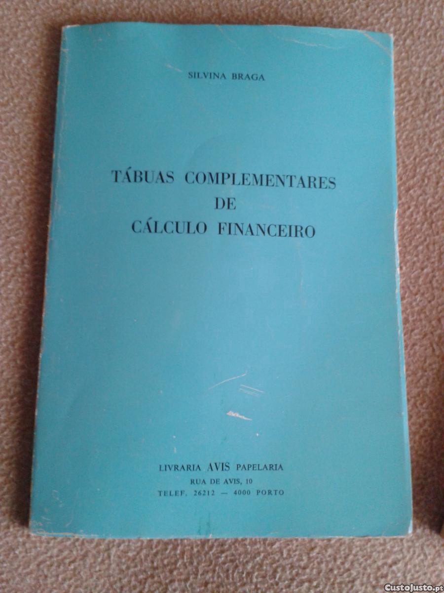 LIVRO Tábuas Complementares de Cálculo Financeiro da professora Silvina Braga edição Livraria Avis /Ambar com 90 páginas e capa mole medidas em cms: 23,5 x16,5