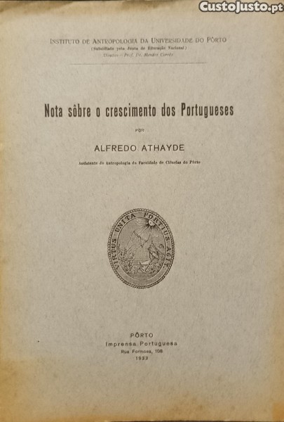 Preço: 7 €Nota sôbre o crescimento do Portugueses - Alfredo Athayde