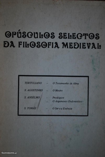 Preço: 15 €Opúsculos Selectos da Filosofia Medieval - Tertuliano, S. Agostinho, S. Anselmo, S. Tomás de Aquino