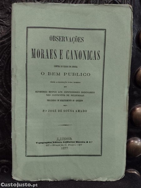 Preço: 7 €Padre José de Sousa Amado 1877 Observações Moraes e Canônicas