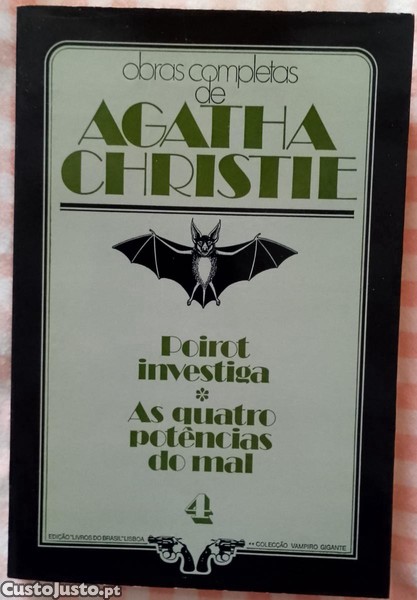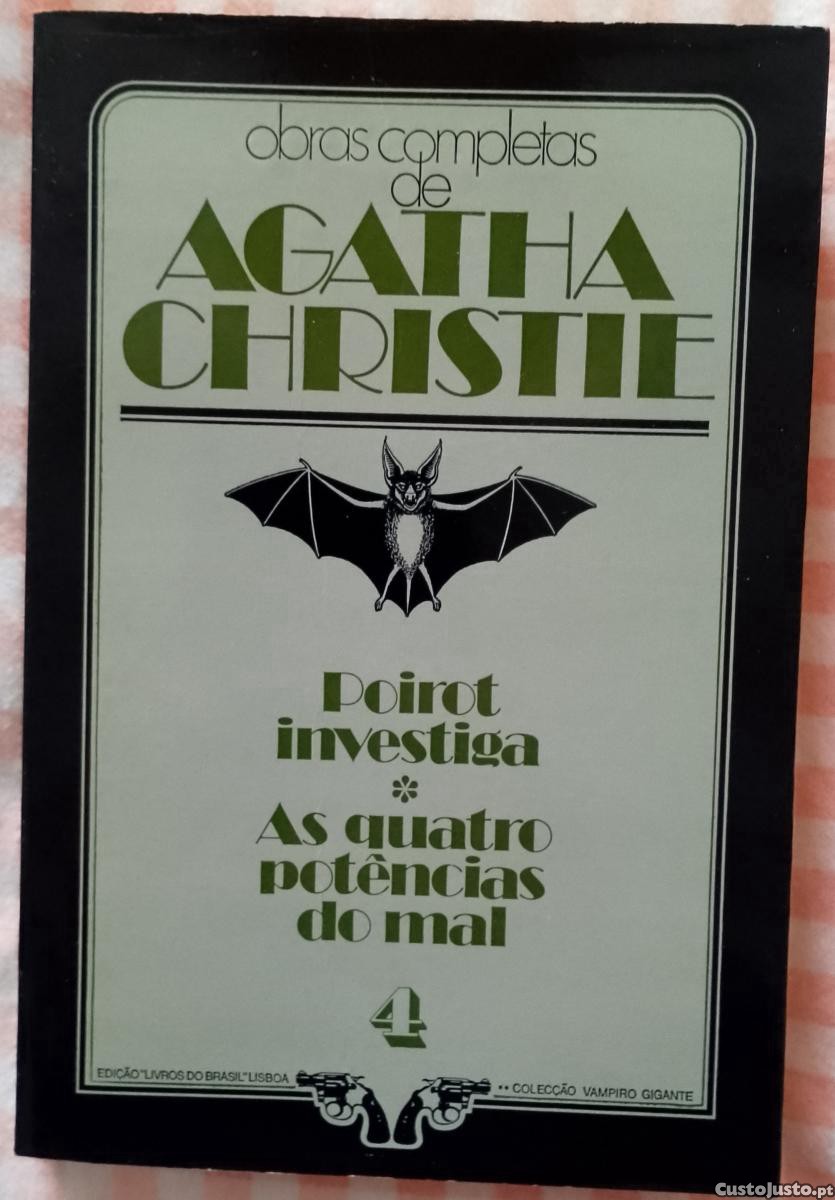 Poirot investiga - As quatro potências do mal, Agatha Christie, Edição "Livros do Brasil" Lisboa, Coleção Vampiro Gigante - Obras completas de Agatha Christie n. 4, s/data, 366 páginas. Pontos de acidez nas extremidades das folhas; ligeiro desgaste na lombada.