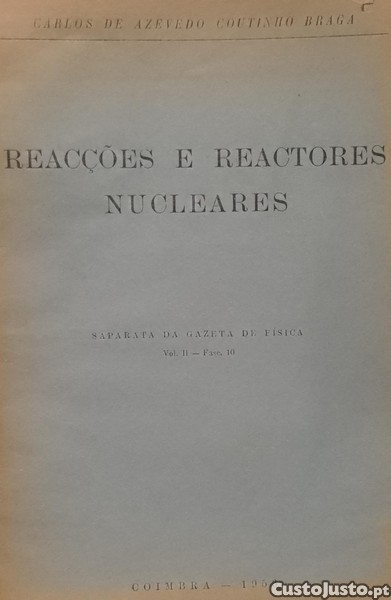 Preço: 8 €Reações e Reatores Nucleares 1953 Carlos de Azevedo Coutinho Braga