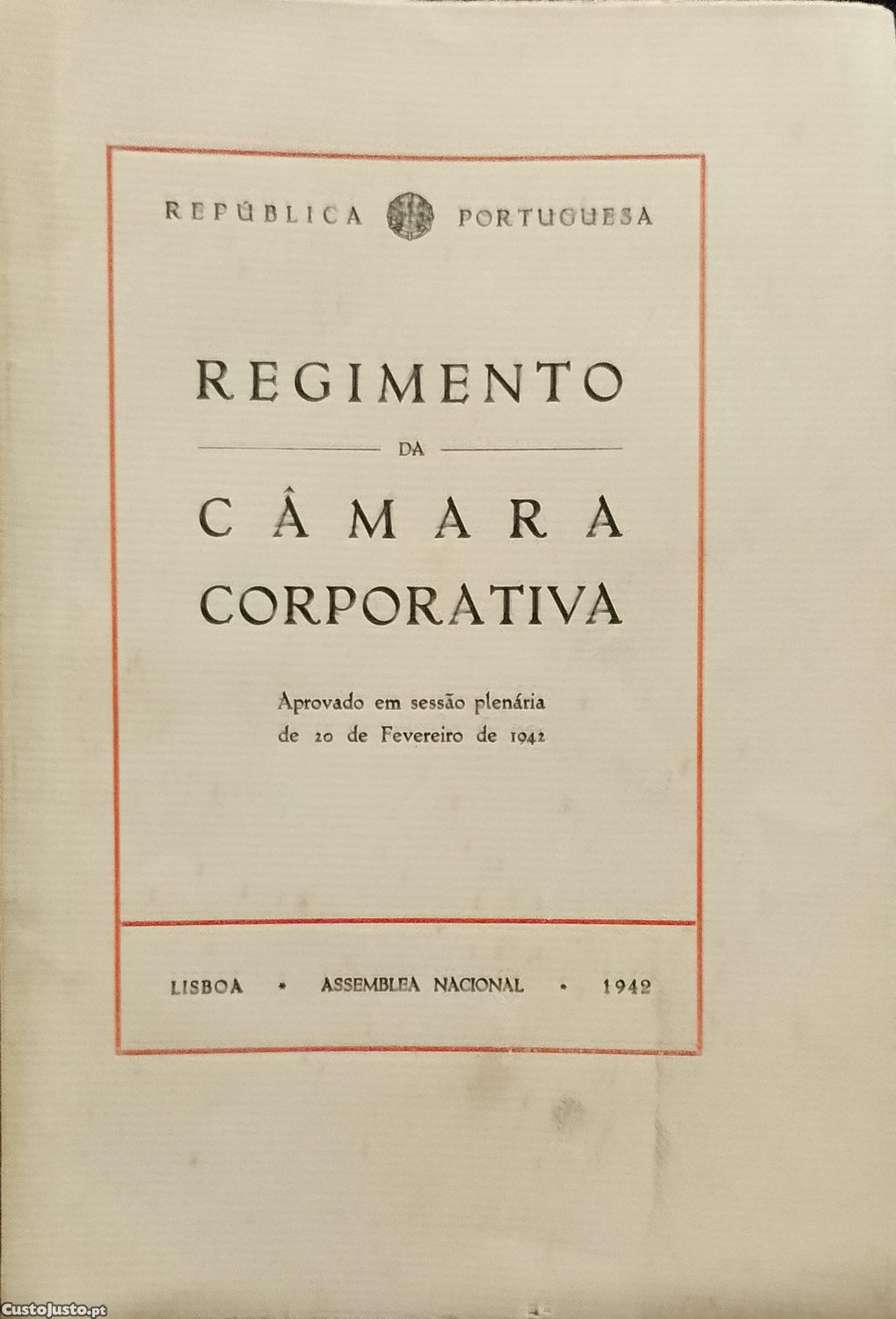 Preço: 8 €Regimento da Câmara Corporativa (1942)