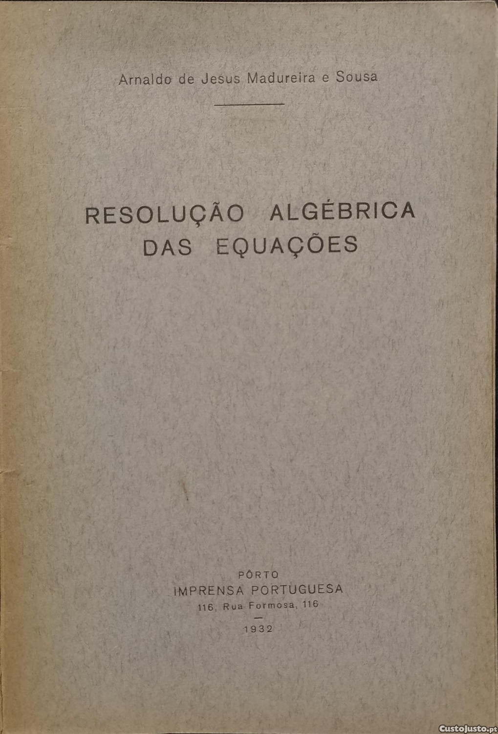 Preço: 9 €Resolução Algébrica das Equações - Arnaldo de Jesus Madureira e Sousa