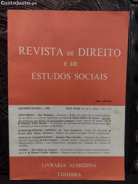 Preço: 7 €Revista de Direito e de Estudos Sociais 1989