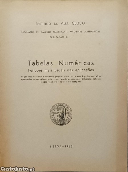 Preço: 7 €Seminário de Cálculo Numérico e Máquinas Matemáticas - Tabelas Numéricas