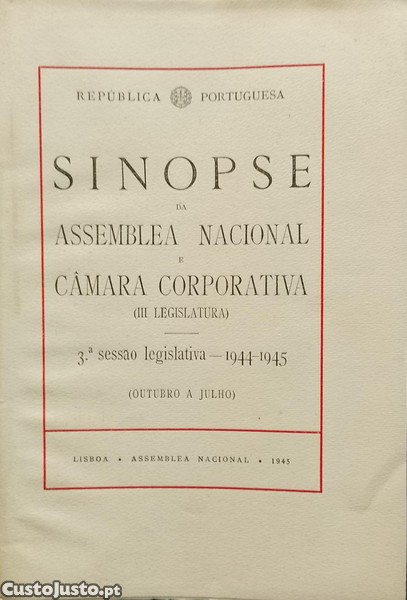 Preço: 8 €Sinopse da Assemblea Nacional e Câmara Corporativa (1944/1945)