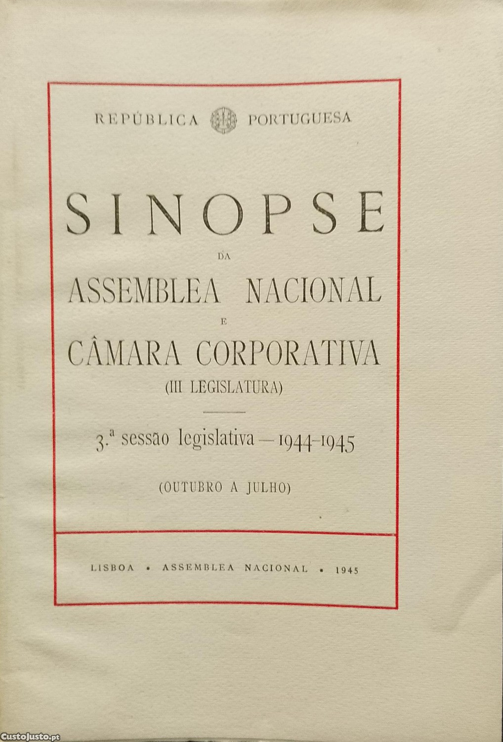 Editora: Assemblea Nacional - Lisboa - 1945, 111 páginas