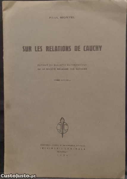 Preço: 6 €Sur les relations de Cauchy 1936 Paul Montel