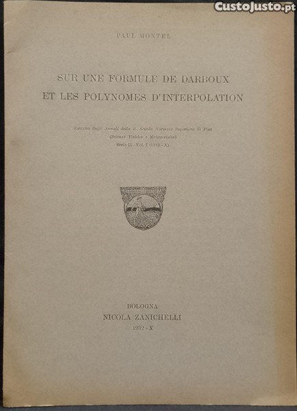 Preço: 7 €Sur une formule de Darboux et les Polynomes D´Interpolation 1932 Paul Montel