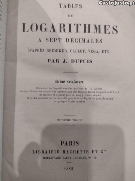 Preço: 10 €Tables de Logarithmes (A sept décimales) - J. Dupuis