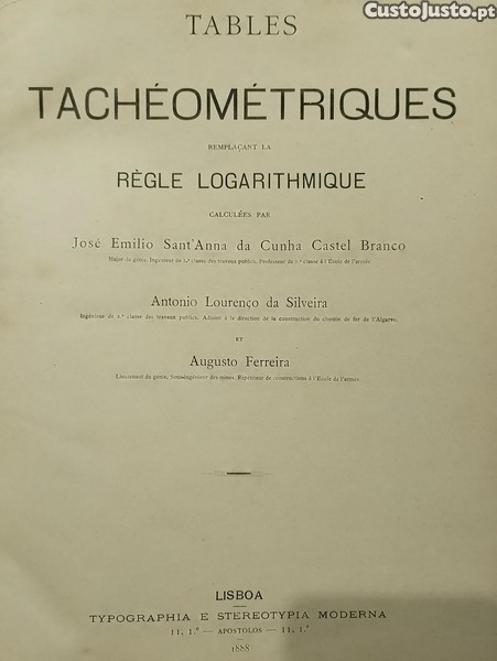 Preço: 59 €Tables Tachéométriques 1888 José Emilio Sant´Anna da Cunha Castel Branco
